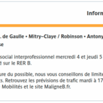Voici les quelques perturbations prévues cet été sur notre cher RER B. En espérant que les « non prévues » ne soient pas nombreuses : L’installation du pont des cathédrales à Saint-Denis (Seine-Saint-Denis) se poursuit. L’ancien ouvrage sera démonté du 12 au 14 juillet ce qui nécessitera l’adaptation des circulations des lignes B, D et K. Et du 15 […]